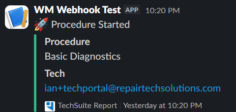 Sent immediately when a TechSuite procedure begins running.